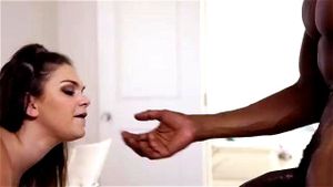 Adorabile e formosa bionda scura con un sedere a bolla prende un cazzo da un atletico ragazzo di colore