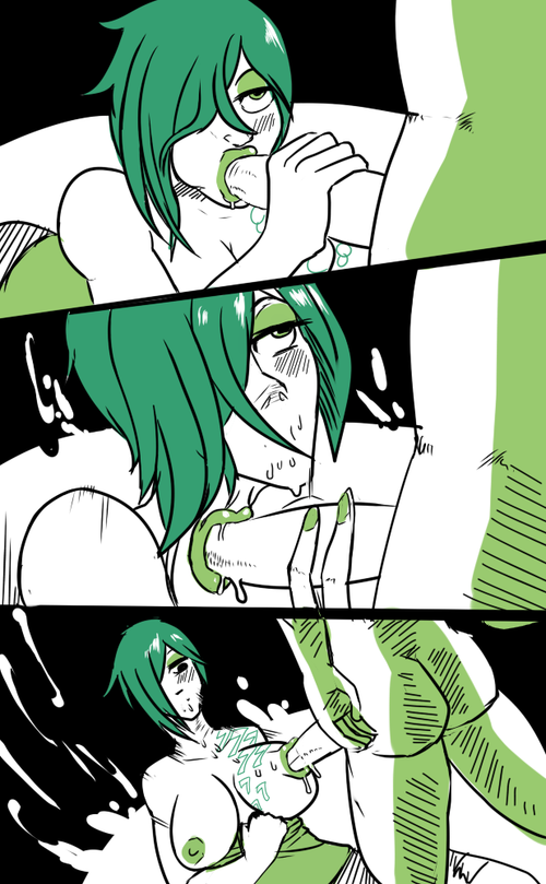Good looking hentai slut with huge tits sucking dick on her knees