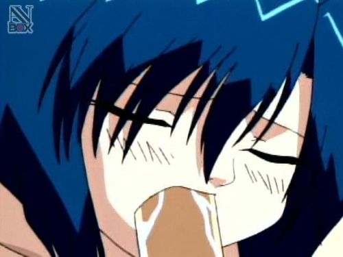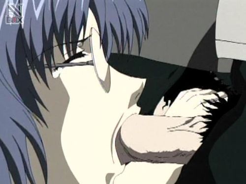 Cute hentai teen sucking and licking a very big dick