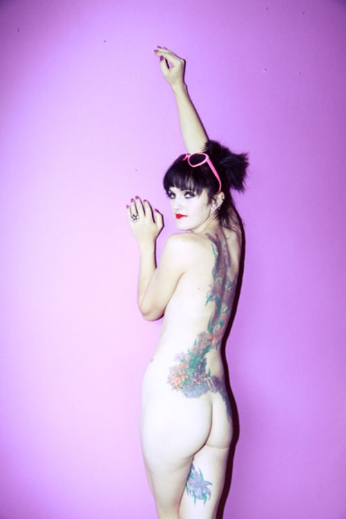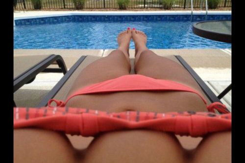 poses in a hot blue bikini and then strips totally naked