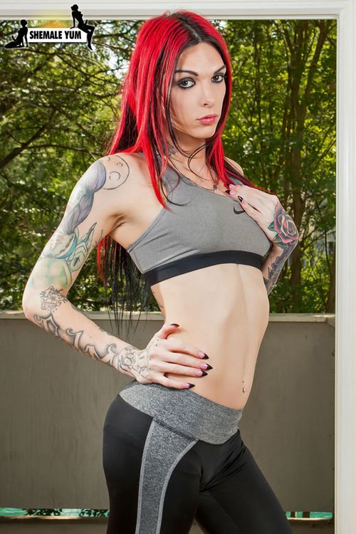 Sexy Mature Tranny Redhead Wendy Summers shows her tits, tight Shemale Ass and Hot Upskirt Cock wearing Cute Outfit..