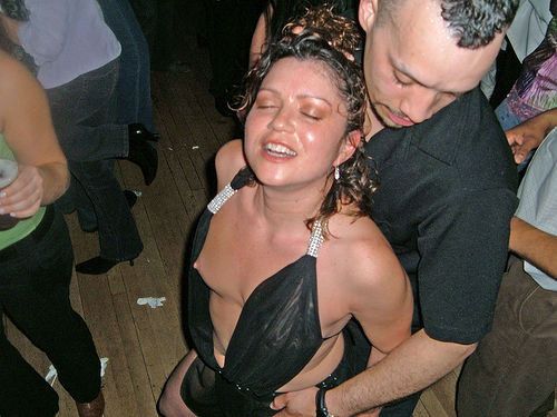 Tipsy and horny chick is going wild in the nightclub, to the delight of onlookers