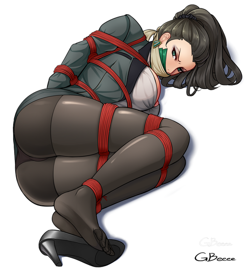 Red Lipstick Long Hair Black Stockings 098