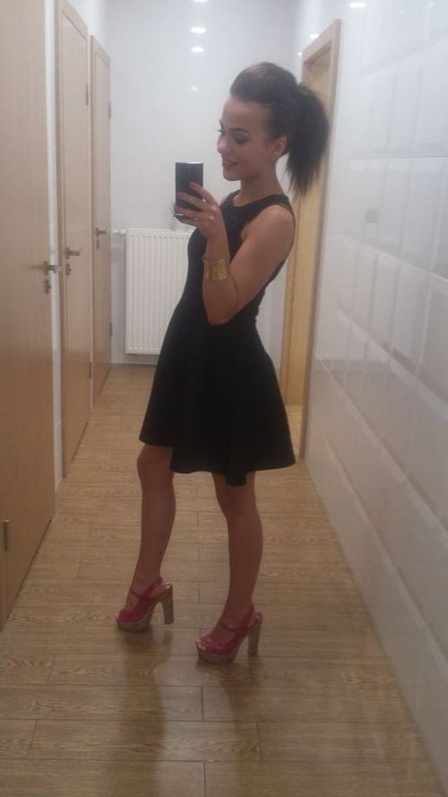 Damm sexy brunette going out in tight mini black dress and sparky heels