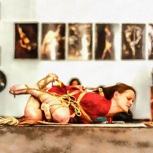 houkago bonde maachin 2girls armpits bdsm black hair blush bodysuit bondage bound together breasts brown hair disembodied limb elbow gloves eyes closed gimpsuit gloves hitachi magic wand large breasts latex latex gloves latex suit long hair multiple girls