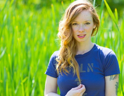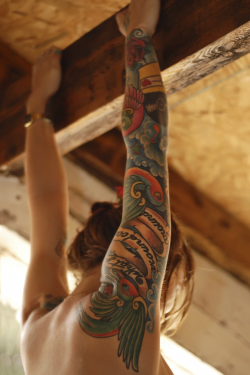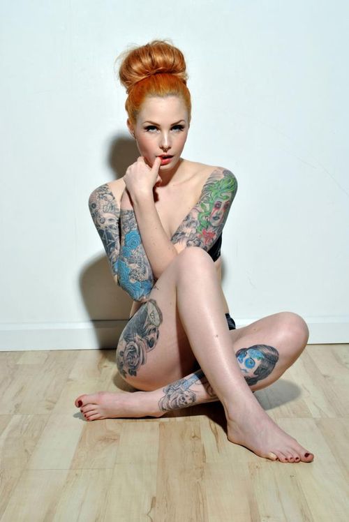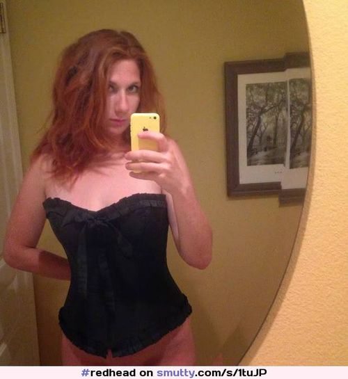 Sexy redhead teen with tattoos and corset