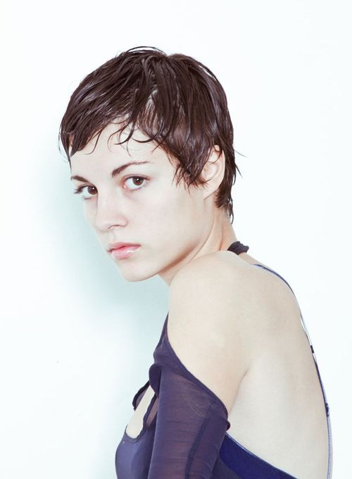 Sultry eyes, cupping her tits!