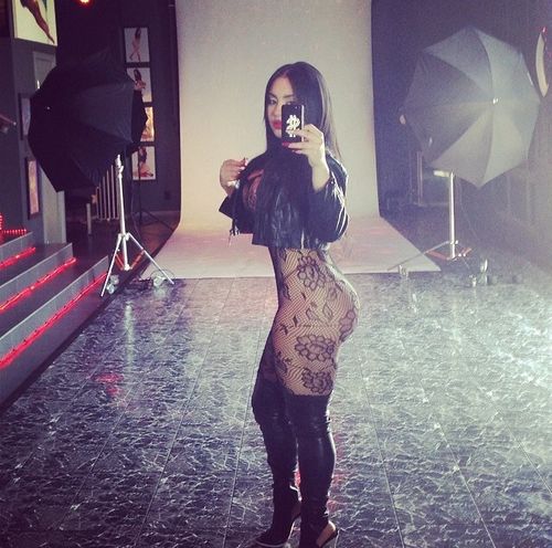 Sexy teen blonde squatting position