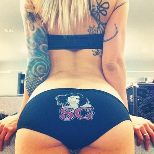 Blonde with huge pierced tits