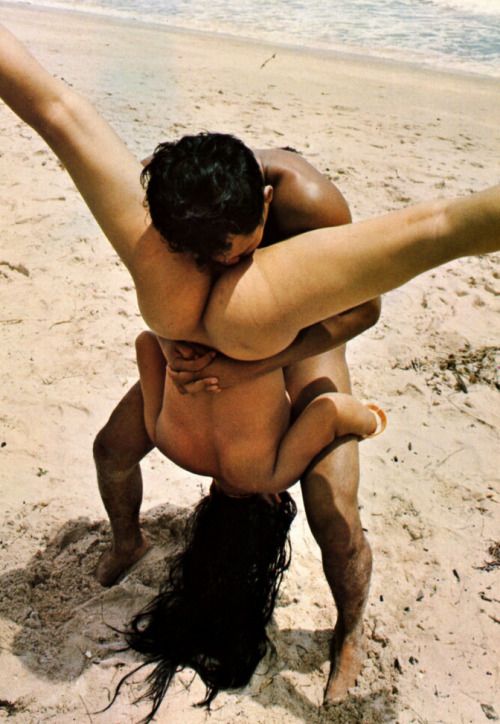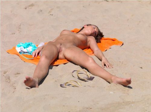 Beautiful and naked on the beach, from the rear.